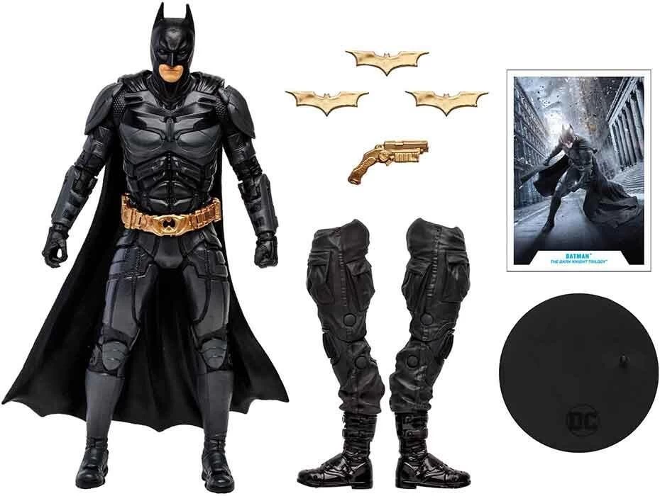 As a child, Bruce Wayne watched as his parents were brutally killed in Gotham City’s Crime Alley. Traumatized by their deaths, he devoted his life to becoming the world’s greatest weapon against crime the Batman! He’s a master detective and an expert martial artist, but his greatest weapon is his mind. Batman has a plan for every occasion, as well as high-tech weapons, gadgets, and vehicles to assist him in his relentless pursuit of justice! Incredibly detailed 7″ scale figure based off The Dark Knight Trilogy. Designed with Ultra Articulation with up to 22 moving parts for full range of posing and play. The figure includes 1 of 4 pieces that when combined with the rest of The Dark Knight Trilogy Build-a line will assemble Bane. Batman comes with a grapple launcher, three Batarangs, Bane build-a figure legs and base. Included collectible art card with character art on the front, and character biography on the back. Collect all McFarlane Toys DC Multiverse Figures.