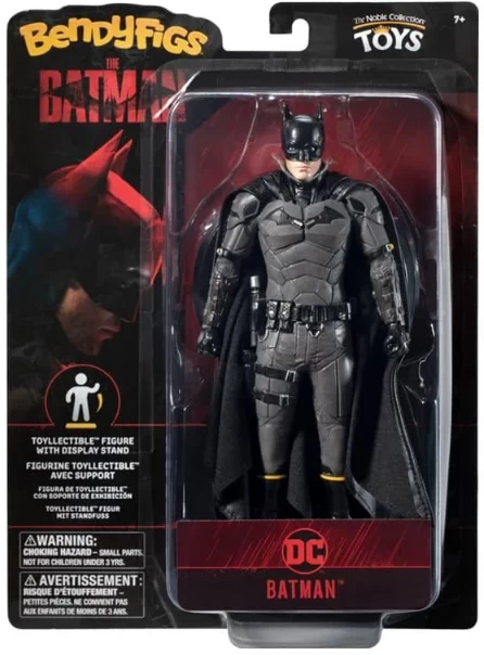 An authentic, intricate bendable figure of Batman in his iconic batsuit seen in The Batman (2022), standing approx. 7.5″ in height.