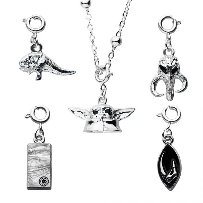 Star Wars Mandalorian Interchangeable Charm Pendant Necklace. Includes 5 interchangeable pendants and is supplied in Mandalorian themed packaging.