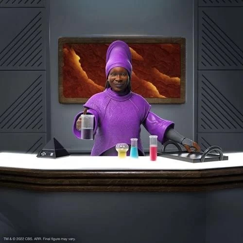 As the sage bartender of Ten Forward, Guinan always seems to have the knowledge needed to help the crew of the U.S.S. Enterprise! This 7” scale Star Trek: The Next Generation ULTIMATES! figure of Guinan features multiple interchangeable heads & hands as well as her rifle, glassware, serving tray, and Pyramid Game. You don’t need to have the wisdom of an El-Aurian to know that this made-to-order Star Trek: The Next Generation ULTIMATES! figure of Guinan will improve the disposition of your collection faster than a shot of Aldebaran whiskey!